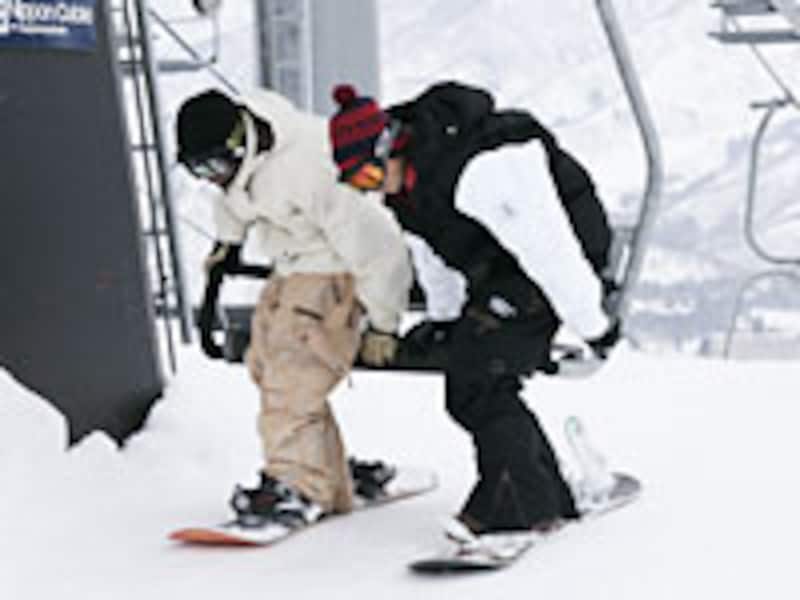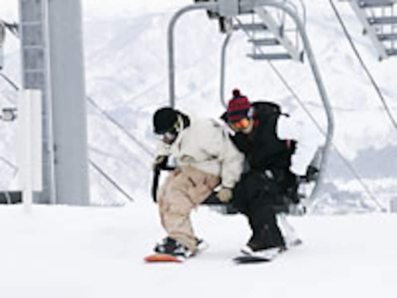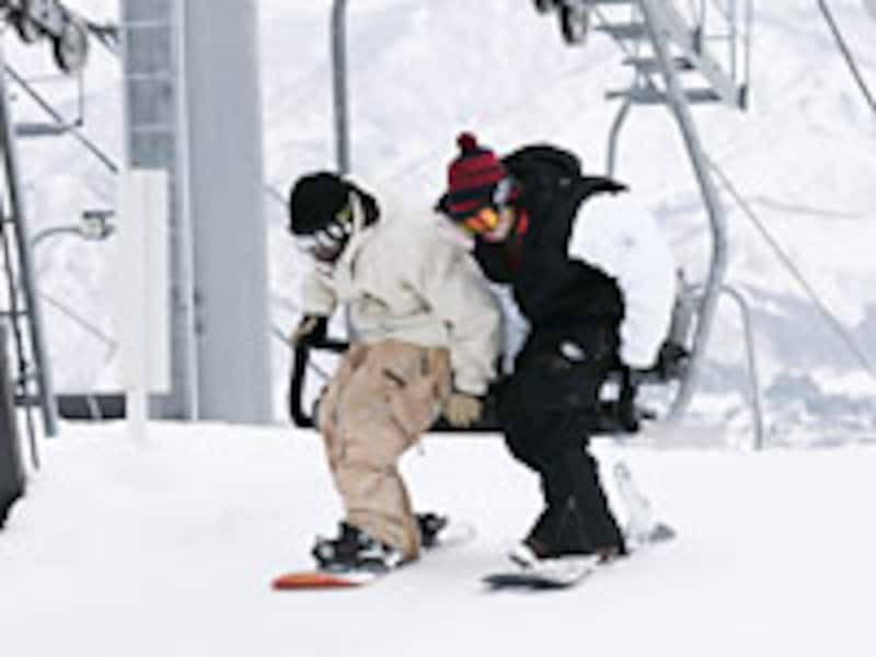 リフトの乗り降りは、ビギナーにとっての最初の難関だと思います。「リフトの乗るの嫌だな」「転ぶのカッコ悪いな」と不安に思うかもしれませんが、それはスノーボーダーなら誰もが通る道です。派手に転んでも誰も気にしていないので安心して下さい。大切なのは、転ぶことを恐がらずにドンドン滑ること。リフトの乗り降りを繰り返して、たくさん滑れば滑るほど、グングンと上手くなりますので、友達とワイワイ盛り上がりながら、スノーボードを楽しみましょう!