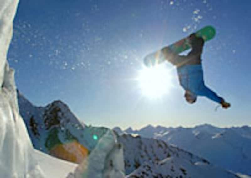 | 「ファースト・ディセント(=人が初めて滑る斜面)」に挑戦する新旧を代表する5人のスノーボーダー (C)2005 Pepsi-Cola Advertising and Marketing,Inc. All Rights Reserved. |