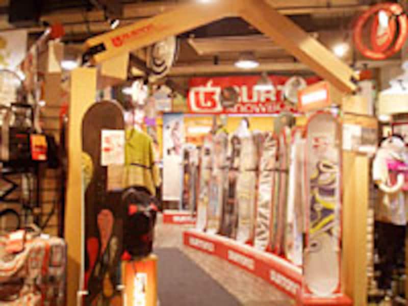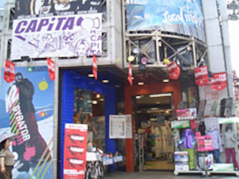 神田スキー街に行ったことがある人なら、「スパッツィオ」という名は知らずとも、この写真の店構えを見て「あ~、あのお店か!」と、思い出す人は多いのではないでしょうか。10月~4月までのウィンターシーズン期間には、地下を含めた7フロアーすべてにギッシリとスノーボードグッズが並び、その商品量と品揃えは、とにかくインパクト大!