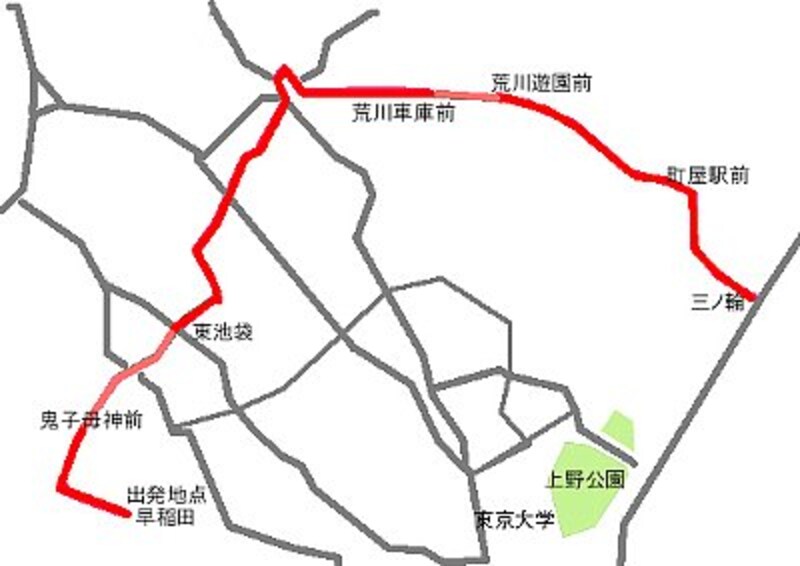 | 早稲田を出発し、鬼子母神で降りる。鬼子母神から徒歩で東池袋まで。東池袋から再び荒川線に。荒川車庫、三ノ輪まで。 |