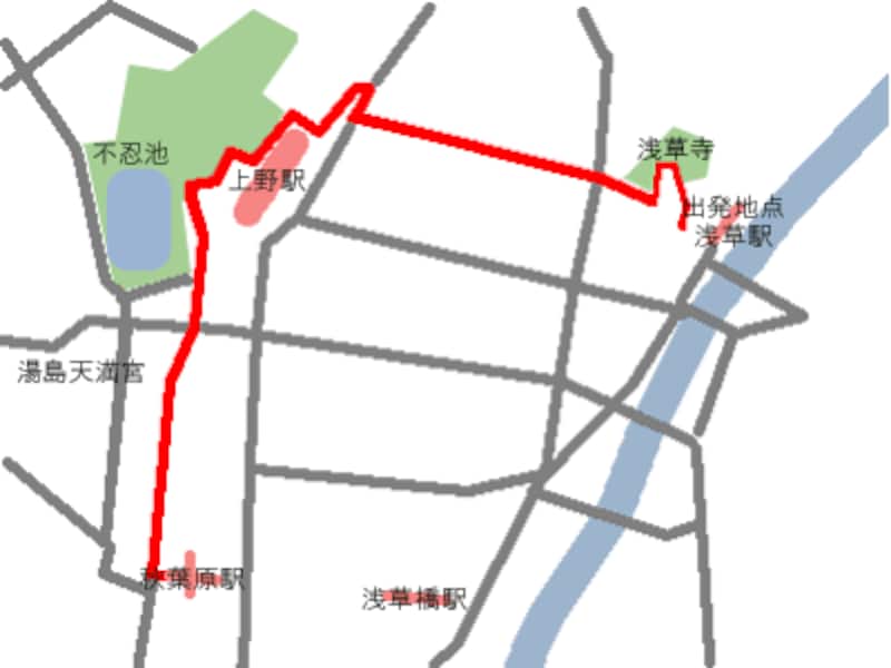 | 浅草雷門から秋葉原まで。所要時間約2時間。普通に歩けば1時間弱。浅草、上野で昭和を堪能し、秋葉原で平成を感じる。時の流れを楽しむにはもってこいの散歩ルートです |