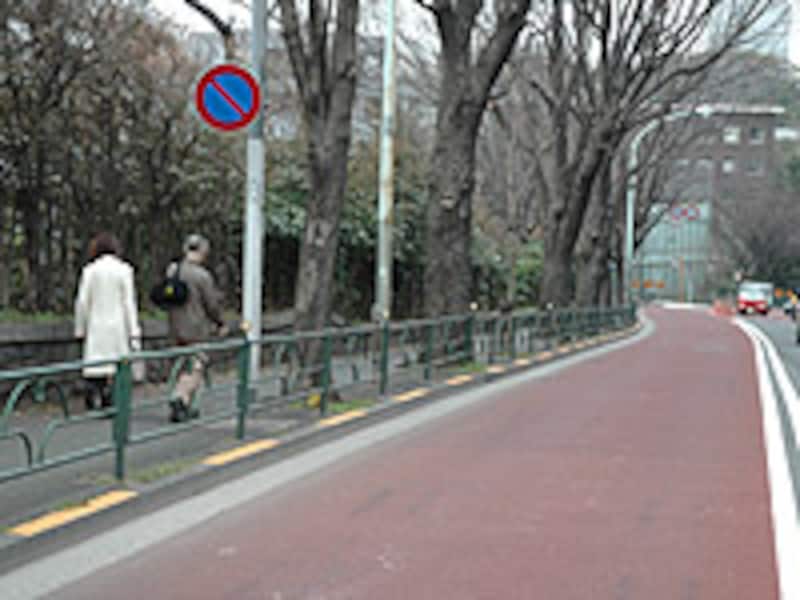 | 権田原坂。右が赤坂御用地、左側が明治記念館。車の往来は激しいが、人通りは少なくひっそりとしている |