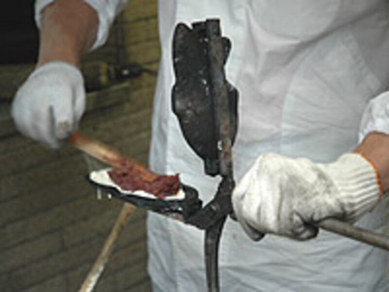 ここは行列に並ぶのも実は楽しい。というのも鯛焼きを焼く行程をそのまま見ることができるからだ。普通、よく見かける鯛焼きというのは、鉄板にいくつも鯛焼きの型があり、そこに生地を流し込むのだが、ここはそうではない。1個1個それぞれの金型にはさみ、炭火の上でクルクル回転させながら、焼いていくのである。一尾一尾焼いていくので、大量生産できないのだ。N君が散歩途中で「どうして鯛焼きに行列ができるんでしょうかね」と言っていたが、この光景を見て、行列ができる意味を理解したよう。