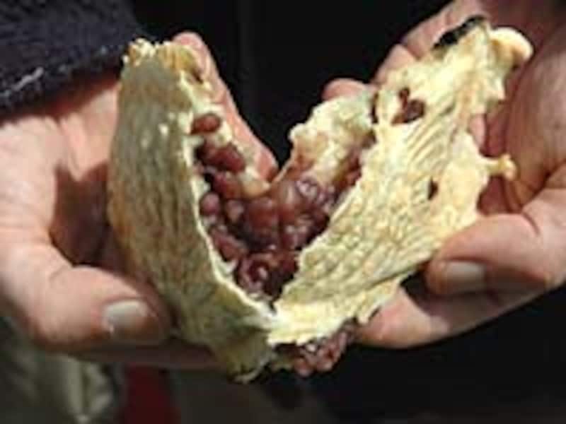さっそく食べてみる。おおおおお、これは……。まったく予想していなかった。他の2店舗とはまったく違うのだ。皮は薄めでかなり硬い。これまでの鯛焼きがお腹のところでうまく割れたのにこちらはなかなか割れないのだ。Nくんのカメラに向け、やっと中のあんこが見えたのだけれど、小豆のひとつひとつがわかる。そしてその小豆がキラキラ輝いている。