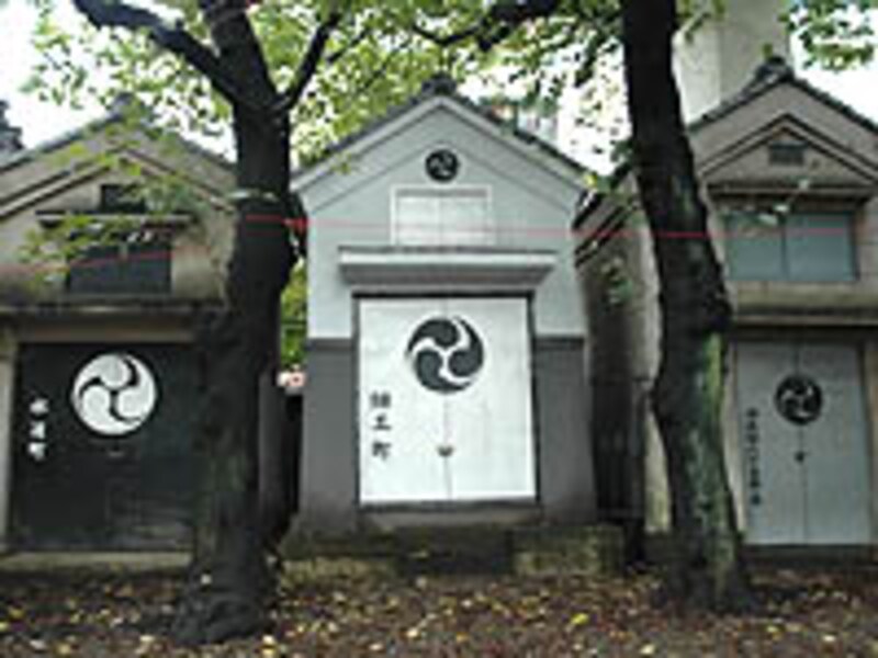 | 赤城神社内の蔵。「西五軒町」など、町名が門扉に入っていた |