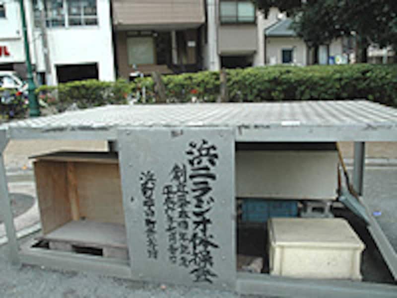 | 浜町公園にて。ラジオ体操が行われているのか、体操舞台がぽつんと佇む |