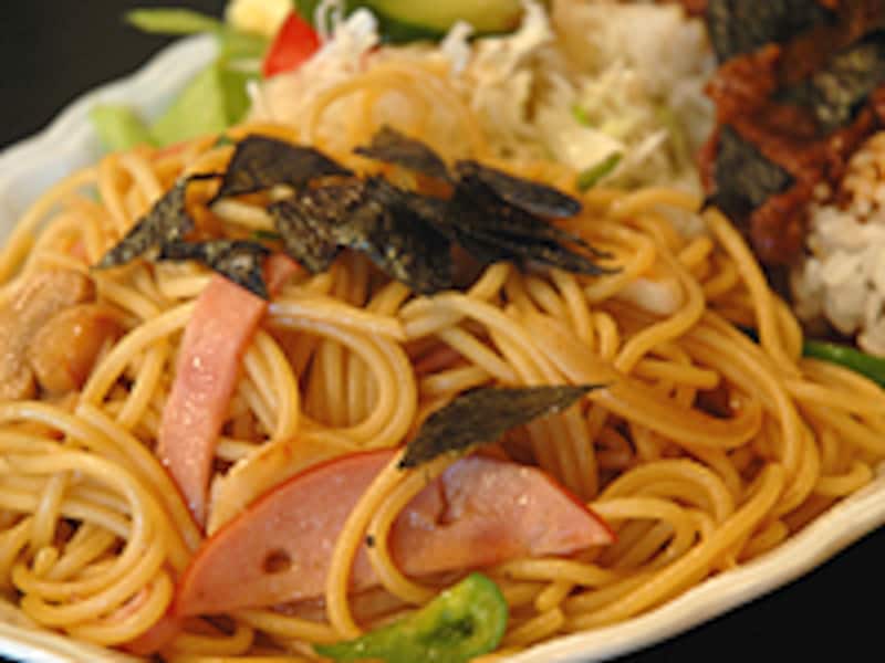 | オリエンタルスパゲティ&カルビ焼きのせライス。こちらも炭水化物+炭水化物の強力ランチだ! |
