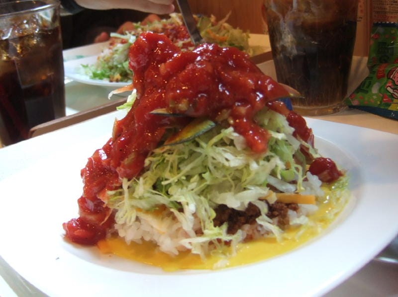 | けっこうボリュームがあるタコライス。歩くためのエネルギーはバッチリ! |