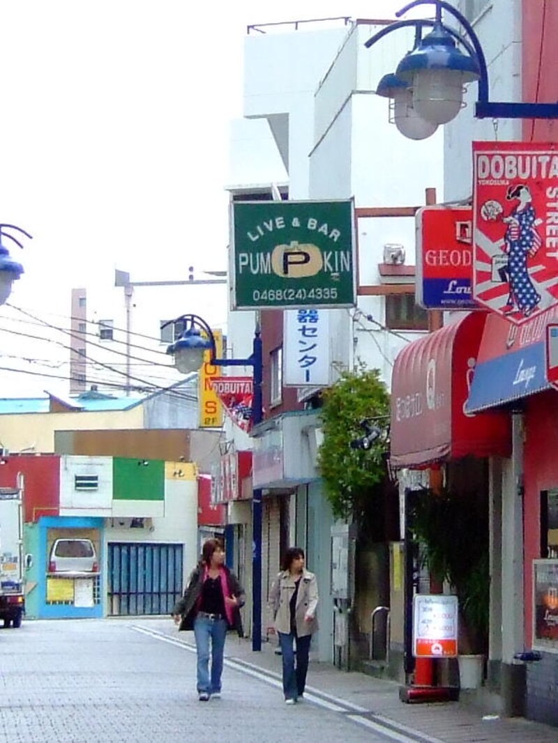 ここは「どぶ板通り」と呼ばれている商店街で、かつてここには、どぶ川があり、その上に板が通されていたそうだ。今はそんな面影もなく、とてもきれいな商店街である。スカジャンの店がある。そういえば、派手な刺繍の入ったスカジャンは「横須賀ジャンパー」であり、発祥の地はここ横須賀である。見ているだけでも楽しい。そのほか、米軍の放出品を売っているお店や米兵相手の日本土産店などもあり、実におもしろい商店街である。看板などもどこか、エキゾチックで独特だ。歩いているだけでなんだか楽しくなってしまう商店街である。