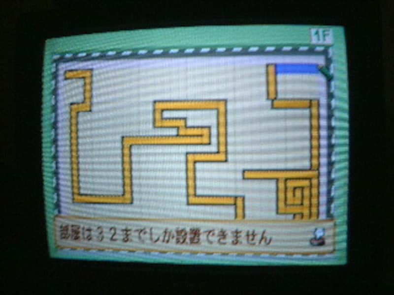 では次に脇道を作って迷路っぽく! ついでにストーリーも考えてみましょう。ゴールをトイレにしてみればあら不思議! 主人公がトイレを求めて疾走する緊張感あふれる状況に! 制限時間はあと5分、みたいな!(頭悪そう) とノリノリで廊下を増やしていると、不意にこんなメッセージが。 ![]() これは大変です。迷路が作れねぇ! …あぁ、そりゃそうだよねぇ。そんなに部屋数がある家なんかないもんねぇ…。迷路、断念!! ![]() 試しに途中作りの迷路をトボトボと歩いてみました。が、なんだかコレ激しく酔います。発案段階から失敗ぽいです。最初からウスウス感じてましたが。 部屋数が少なければいいんだ! ということで次は超巨大御殿に挑戦!(懲りろよ) |