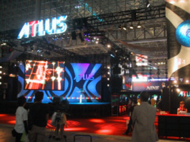 | XboxとPS2でそれぞれ違う『真・女神転生』を開発しているアトラスブース。PS2版『真・女神転生3』のスペシャルトークショーが行われ、前述のようにコナミの小島監督も飛び入り参加するなど話題の尽きないブースでした。 『真・女神転生3』 実は『女神転生』というのは“デジタルデビルストーリー 女神転生”という小説からのメディアミックス作品で、小説、アニメ、ゲーム(それもMSXやPC-8801など)が発売されていたというのを知る人はひょっとしたら少ないかもしれません。何せ15年も前の話なので…。そしてファミコンで『デジタルデビルストーリー 女神転生』が発売され、『真・女神転生』『真・女神転生 if』と回を重ねるごとに元がなんだったかよくわからなくなっていったのがこのシリーズです。ちなみに初代の発売元はナムコ。 とはいっても最初の作品から「敵を“仲魔”にしてともに戦う」「“仲魔”を合体させてより強い“仲魔”を作る」という基本が既に完成されていて、合体した仲魔が「こんごとも よろしく」と自己紹介するのもこの作品が最初。15年前に作られたシステムが完成されていたからこそ、回を重ねても色あせない魅力があるのではないでしょうか。 今回の見所はやはりグラフィックです。コナミの『ANUBIS』でも参加した、アトラスの誇る悪魔絵師“金子一馬”氏の描く悪魔がハードの性能が上がるごとに再現度を増していくのは必見です。また、このシリーズはゲームとしてかなり硬派な作品なので遊び応えを求める人にもオススメ。シリーズ作ながら作品ごとに「元のイメージを崩さずに」正統進化することのできる稀有な作品なのです。 |
