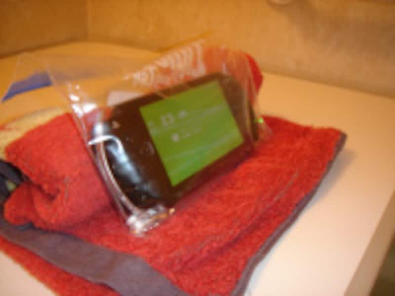 | 毎度、お風呂場でのPSP。我が家では入浴剤を入れたお風呂にゆったり浸かって映画や番組を観るというスタイルがすっかり日常になりました。 |