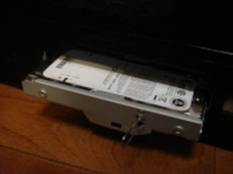 | 前面に押し込むようにしてから手前に引き出すと簡単に取れる。交換自体は非常に簡単なので、データのバックアップに気をつけよう。 |
