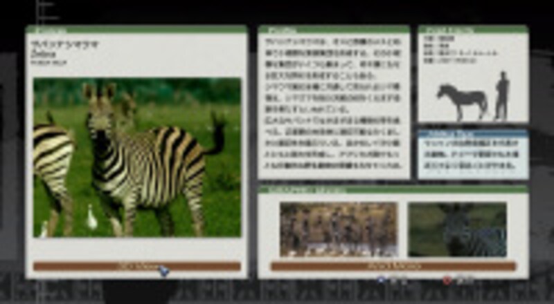 ナショナルジオグラフィックの協力で、充実したデータベースが閲覧できる点も強調したい。撮影に成功した動物のデータが順次閲覧可能になるので、やりがいもある。