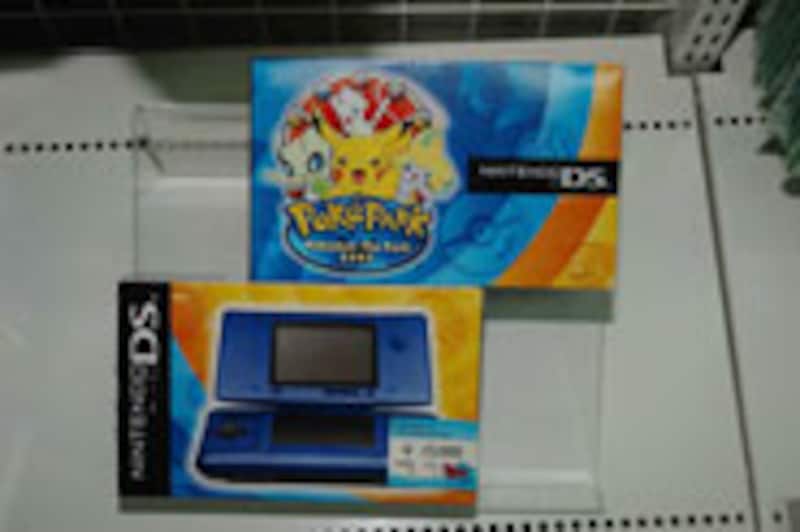 | 左写真は、ポケパーク限定カラーのニンテンドーDS。右写真は、おそらくポケモンショップいちの人気商品。これを持ってレジに並ぶ人がたくさん居ました。 |