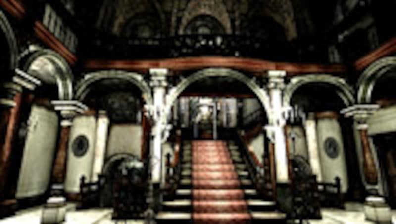| 『バイオハザード』の舞台となる洋館。内部にはゾンビ化した人間や犬のほか、t-ウイルスによって巨大化したヘビなども待ち構えている。 |