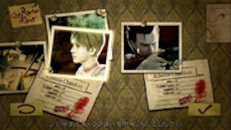 | 左写真は『バイオハザード』第1作の、右写真は『バイオハザード0』のシナリオ選択画面。時代ごとにキャラクターを選択し、アンブレラ崩壊の謎に迫っていくことになる。 |