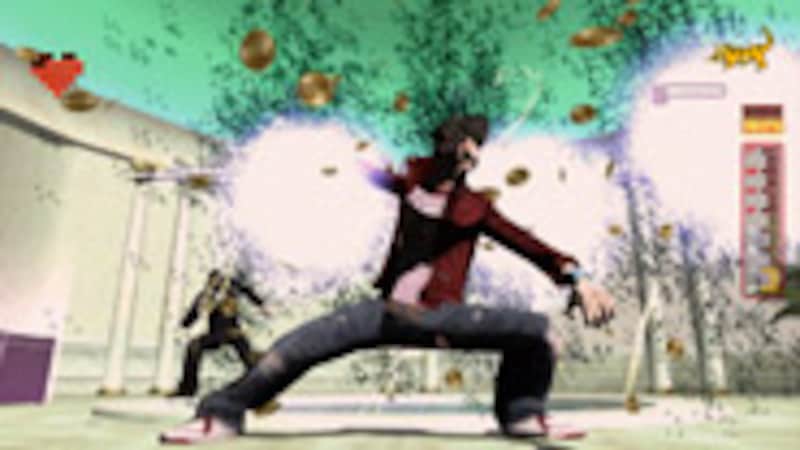 | Aボタンを押すだけで敵をガンガン攻撃できつつ、トドメを刺すときはWiiリモコンを振ることで強烈な一撃をお見舞いする。この瞬間はスローモーションになり、気持ちよさをさらに引き立てる! |