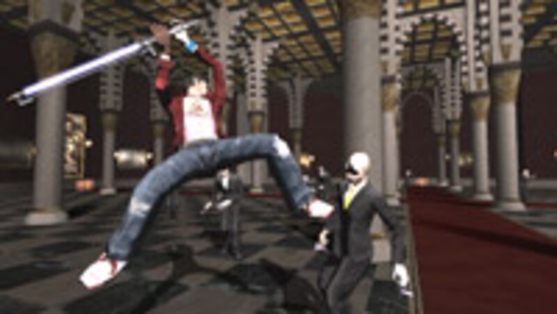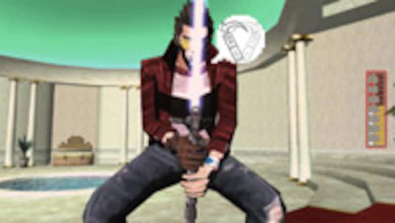 トラヴィスが操る武器は“ビーム・カタナ”。これを見ると、いかにもWiiリモコンを振りまくるようなゲーム内容を想像してしまいますが……じつはプレイヤーは、攻撃のたびにWiiリモコンを振る必要はありません。トドメの一撃をくり出すときに、ここぞとばかりにWiiリモコンを使うのです。そして、これがすごくキモチイイ!