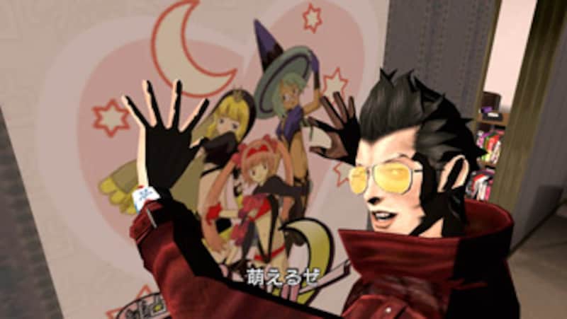 | 殺し屋ランキング第11位に選ばれてしまった主人公、トラヴィス・タッチダウン。魔女っ娘萌えアニメ『ビザールジェリー』をこよなく愛しており、家にいるときも、殺しのミッションに挑むときも彼女たちと一緒。 |