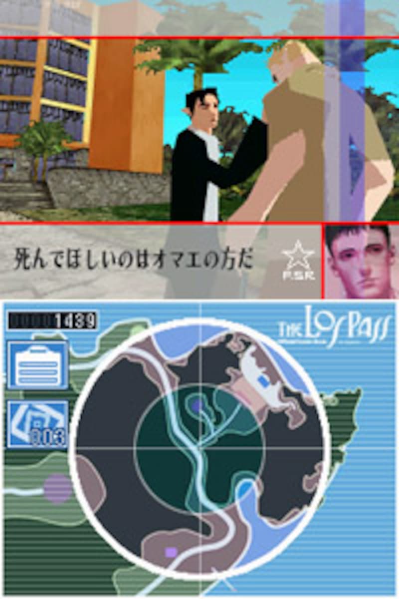 | 島は完全3Dで描かれ、移動時は下画面にマップが表示される。タッチペンによる快適移動と、タッチパネルへのメモ機能を駆使して、島の人々に聞き込みをしていこう。 |