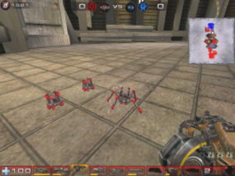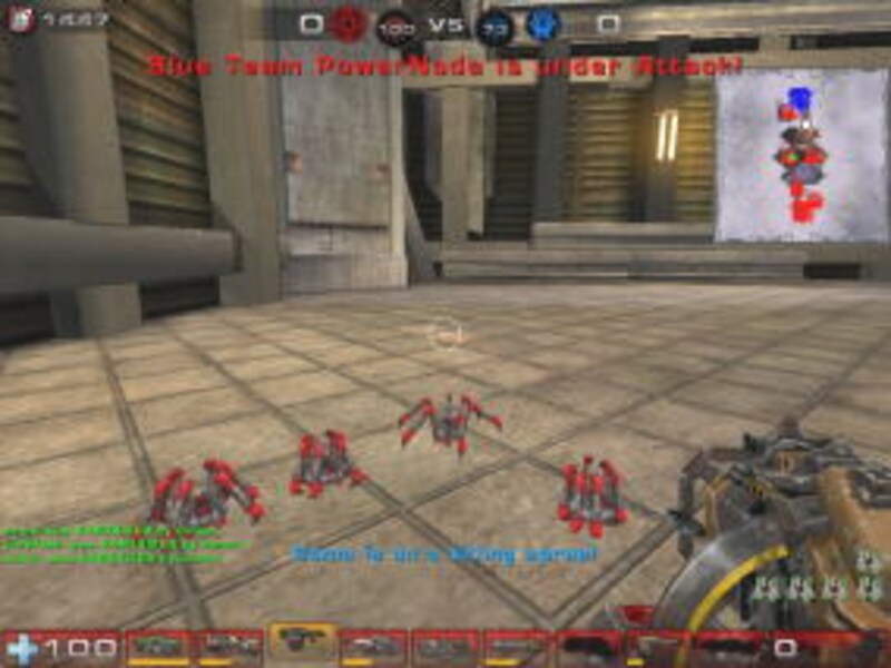 | Mine Layer (マインレイヤー)は地雷設置機と呼んだらいいでしょうか。ただの地雷じゃないのがUT2004の世界。設置した直後は、その場所で敵を待ち向かえる状態にあり関知すればクモのごとく目標に向かって移動していき敵の至近距離で爆発します。 |