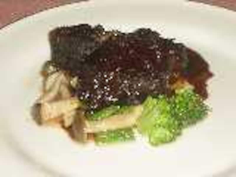 「スペイン産山ウズラのロースト」はほどよく身が締まり、ローストの加減もちょうどいい。塩加減もワインが進むように設定してあるかのようだ。ちなみにワインはブルゴーニュはメオカミュゼのACブルゴーニュ(6500円)。ゆるゆると香り立つこのワインは硬すぎず、濃すぎず、このクラスでは珠玉のワインではないだろうか。言うまでもなくこの料理にどんぴしゃり。 ワインはとにかくものすごい数のラインナップだが、実はそこには目をくれずに料理を楽むつもりで出かけて、そのついでにACブルゴーニュクラスのワインを選んでもらう。こんな楽しみ方にしっかりと応えてくれるレストランでないかと思う。