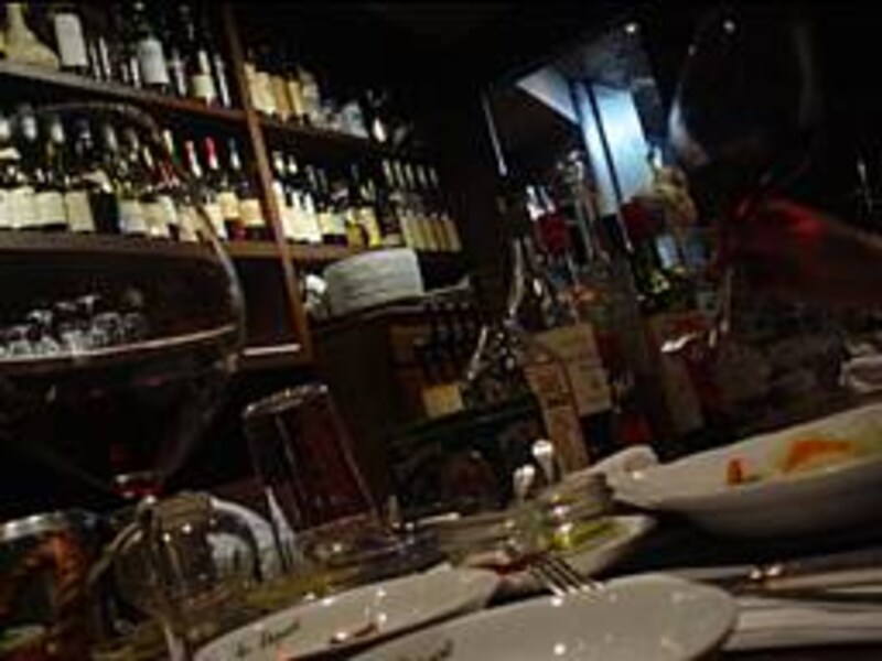 このビストロを一言で言うならば「雑然さ」かも知れません。木作りのドアを開けるとその先には食欲をそそる香り。グラスやボトルに混じってハンガーコートや雑貨が並んでいますが、あくまで品のいい雑然さ。店内の明るさもほど良い暗さ。すべて長い時間をかけて熟成した日常そのままであることにすぐに気付くでしょう。。