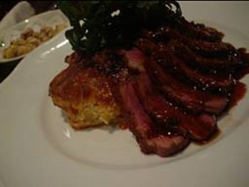 肉厚の鴨肉ローストは赤ワインがドンと効いたソースに絡めて一気に攻めたいところ。ジビエではありませんが噛み応えある良質な鴨肉を強めにローストしてあります。迎え撃つブルゴーニュワインは脂ぎった肉を流し込む究極のソースとなったところで、さてさて大人の胃袋はこの辺で大団円。更に余裕があれば、デザートというよりチーズと赤ワインでさらに余韻を深めたいものです。大皿と格闘しながら食欲が満たされていく醍醐味がしっかり楽しめること、間違いないでしょう。