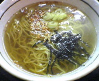 基本の拉麺は「拉麺丸」、500円と安いところが『変』。食べた感じ、そんなに安い値段で提供するようなラーメンとは思えない。そしてこのラーメン、何が変わっているかと言えば、ラーメン店では一般的な豚ガラや鶏ガラといった動物系の材料をスープに使ってない。これはラーメンとしてはかなり珍しい。このあたりが『大いに変』である。ここのスープは、全て海からの素材で、鰯・鯖・鰹・昆布・エイヒレ・帆立・海の塩などから作っているらしい。そしてトッピングにあられ(米を揚げたモノ)が入っているのも異様に『変』。でも、あらゆる『変』な構成にこのあられは、うまくとけ込んでマッチしてしまうところが妙におかしい。