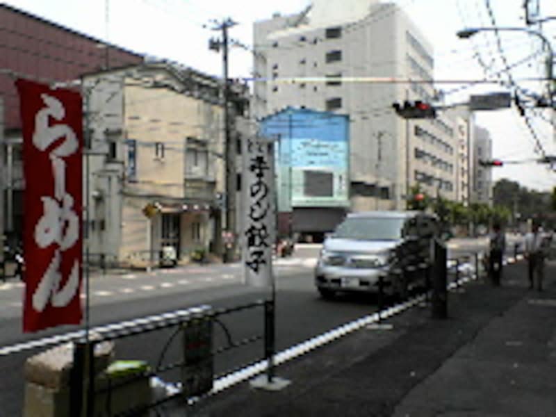 ▲池之端二丁目信号付近にあるこの旗が目印 |