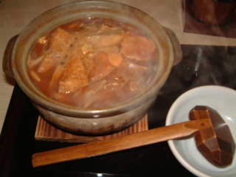 じつはでら打ちの鍋焼きうどんは食べたことが無いのだ。ここではいつも味噌煮込みうどんがカレーうどんを食べてしまう。この味噌煮込みうどんがちょっと東京では食べられない逸品で例の煮えていないと錯覚する本名古屋式味噌煮込みうどんだ。他のうどんとは別に仕込まれて毎日限定の10食前後しかない。特製味噌ダレと鶏のダシと合わされて名古屋ファンにはたまらない、癖になる味なのだ。でも時々うどんの食感と味噌味の独特の風味にギブアップする方もいるそうだ。ぜひ一度チャレンジしてみよう。本当に癖になること確実。