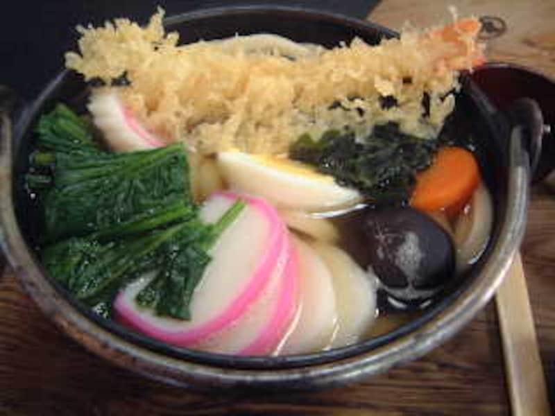 いつもは味噌煮込みうどんを中心に食べているのだが鍋焼きうどんも楽しみなお店。鍋焼き系メニュー充実である。味噌煮込みうどん、鍋焼きうどん、辛味鍋、けんちん鍋、時雨鍋と煮込みうどんが本当に豊富。きしめんでも注文できるのでバリエーションはより多くなる。うどんは茹で立て。きしめんも当然茹で立て。うどんは煮込んでもコシ、伸びがある。きしめん派は煮込まれて少し柔らかいのがお好みの方が多そうだ。鍋焼きうどんは海老天、蒲鉾、伊達巻、青みと色合いが良い。ご飯とたくあんの付いた定食にすることもできる。