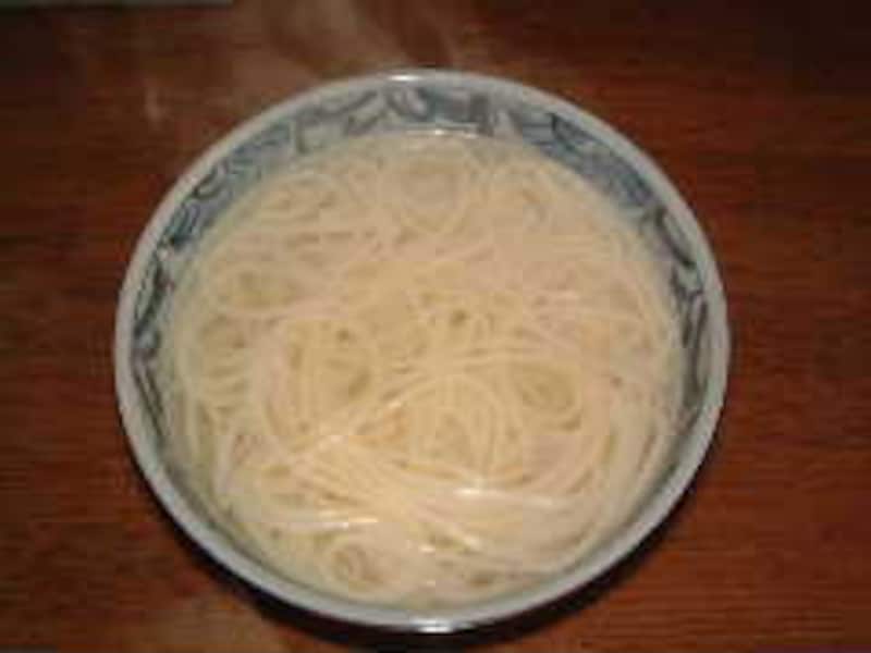 同じ時間内で提供できるうどんの数はどこで決まるだろう。生麺と乾麺の差がここで出たのだ。讃岐と加須は手打ちの生うどん。讃岐はしっかりゆでれば8分10分。