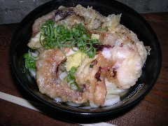 ひやかけ イリコだしが効いたすっきり系。うどんはかなりしっかりした腰の強いもの。太さは標準的な4から5ミリ程度か。スタップの背中には腰一徹の文字が背負われている。てんぷらはげそ天をゲット。パロットのマスターが解説してくれた。巨大げそ天、かぶりつくしかないそうです。相当でかいです。でもイカはやわらかく美味いです。