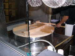 ネギを入れてかっ込む。気持ち辛いのは醤油のかけすぎか釜の湯が塩辛くなってきたせいか・・・本番では麺も1玉230グラムと大きくなるからきっと丁度良くなるだろう。今日は内覧会試食用に気持ち小さめな玉にしてあるようだ。