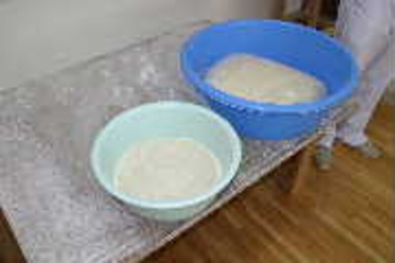 1 練る 専用小麦粉に塩水を加えて練る。手作業で練る。足では踏まない。