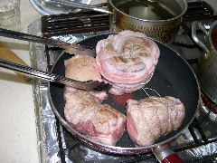 ●フライパンにサラダオイルを少量入れて肉の表面を軽く焼きます。