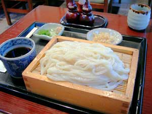 花坊の基本メニューは京うどんだ。品の良い細打ちうどんの喉越しは特に夏には涼しさを演出してくれる。半透明のみずみずしい茹でたてのもりうどんは一種なまめかしい。一口すすると思わず顔がほころぶ。喉が喜ぶ抜群の喉越しである。