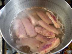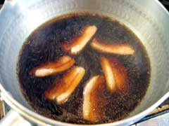 鴨南蛮うどん鴨南蛮うどんの作り方合鴨肉を使った鴨南蛮うどんを作ってみましょう。鴨のくわ焼や鴨汁のアレンジで作れます。温かい汁の取り方もご紹介しましょう。ちょっと贅沢な気分になれる鴨南蛮です。しっかり歯ごたえの味わえる厚切り鴨は幸せを感じられるかも。【材料】4人前合鴨肉400グラム 冷凍でも可長ネギ2本日本酒 180cc 下処理用味醂50cc淡口醤油120cc(または返し200cc)砂糖少々うどん4玉ダシ1200cc【ダシの取り方】ダシ材料利尻昆布花鰹30グラム水1.5リットル昆布だし昆布は切込みを入れて水に1時間程度浸しておく。切れ込みを入れるのは早くダシが出るようにするため。沸騰寸前に昆布を取り出す。花鰹節沸騰したら花鰹を入れ4分ほどダシを取る。厚削りの鰹節や混合節でも良いダシが出る。厚削りの場合は10分ほど煮出す。漉し鍋の上にざるを置き木綿布巾かキッチンペーパーなどを敷きダシを漉す。酒で下煮鴨は日本酒で軽く煮て下処理する。鴨独特の臭みが取れる。煮すぎないこと。表面の色が変わる程度でよい。ネギを焼くネギを適当な長さに切り、鴨の脂身のあまりで焼く。少ししんなりとする程度で表面に焦げ目が出来る程度にする。鴨を煮るダシと薄色醤油と味醂をあわせてつゆを調整する。甘みは味醂の量で調整する。うどんを茹でる茹でて締めたうどんをもう一度ゆがいて温めて丼にとる。温めたつゆに鴨をくぐらせて丼に盛り付ける。ネギを添える。ユズの小片があれば添えると良い。完成熱々をズルズルといただく。鴨肉がたっぷりで嬉しい一品となる。鴨から出るダシが甘辛の汁とよく馴染む。冬のネギの甘さも熱がちょっと入ることによりより甘みを増す。煮すぎると色が黒ずむので色が変わらない程度に仕上げるのが良い。鴨肉の代わりに鶏肉を使えばかしわ南蛮となる。鴨のくわ焼の作り方鴨汁の作り方※記事内容は執筆時点のものです。最新の内容をご確認ください。※メニューや料金などのデータは、取材時または記事公開時点での内容です。