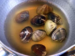 アサリうどんアサリうどんの作り方アサリの旬は春と秋ですが5月から夏にかけては潮干狩りなどの機会も多いものです。一年中楽しめるアサリですが簡単な調理で驚くほどの旨みのあるダシがでます。アサリを活かしたうどんを作ってみましょう。下準備が終ったアサリ【材料4人前】大粒のアサリ24から30個程度うどんカケダシ (鰹節) 1200cc淡口醤油 80cc日本酒少々塩 少々うどん4玉 (冷凍うどんでも可)ミツバ少々あっさり仕上げる【下準備】アサリの砂だしアサリを噛んでジャリっと音がするのは文字通り砂を噛む思いです。しっかり砂を吐かせましょう。2パーセントから3パーセントの塩水を平置きしたアサリが軽くかぶる程度に張り数時間おきます。暑いところはダメですが冷えすぎるところもダメです。常温で暗くしましょう。塩水が濃すぎると貝が死にますのでご注意ください。砂抜きしたアサリは数個をこすり合わせて洗います。ごしごしと刷り合わせてぬめりや貝殻のゴミを取ります。流水で洗って水を切っておきます。ダシの準備水1リットルを沸騰させて鰹節でだしを取ります。簡単にする場合は粉末ダシの元でもかまいません。 一人前200cc程度のダシを使います。ダシができたらアサリを入れて加熱します。貝の口が開いたら淡口醤油で味を調えておきます。日本酒と塩はお好みで調整します。茹でたうどんを湯通しして温めたら丼に盛り、ツユと貝を盛り付けます。薬味は小口切りの小ネギと青みで三つ葉を添えると美しいです。うどんも茹でたて貝のコハク酸とタウリンの旨みが活きたシンプルうどんですが滋味を感じる味に仕上がります。アサリうどん完成※記事内容は執筆時点のものです。最新の内容をご確認ください。※メニューや料金などのデータは、取材時または記事公開時点での内容です。