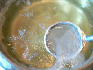 【手順4】途中で出た灰汁を何度か取り除きます。灰汁を取らないと出汁が濁ることがあります。