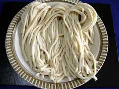 うどんにも表示がきっちり秋田市のこむぎやさんは鈴木牧子さんが一人できりもりする製麺屋さん。話を聞けば一般家屋の中に製麺機を置いて注文に応じてうどんを作るという日々だ。1玉100円という価格も魅力だが話題の地粉ネバリゴシ100パーセントで作る秋田発の自家製麺を味わってみたい。みずみずしいうどん昨年途中から今まで使ってきたナンブコムギからネバリゴシという東北4県の推奨品種の小麦粉に原料を代えたとの連絡をいただいた。秋田といえば稲庭うどんが有名だがその秋田の切麺にも興味があった。鈴木さんは6年ほどこの自家製麺の仕事をされているそうだが、一般家庭なので看板もなく知る人の口コミやわずかに立ててある『うどん』の幟でだんだんとその存在が地元で知られるようになってきている。ネット通販にも取り組んでいるので全国各地からの注文も飛び込むという。自信に満ちたWEBサイトやうどんの説明書にも好感が持てる。ネバリゴシのうどん適正最近各地の農業試験場では小麦の新品種の開発育成に熱心だ。国産小麦に日が当たってきたということか。うどんブームやラーメンブーム、健康志向など国産小麦の注目度が上がりつつある。全国的に見ると徐々に小麦の生産量は近年増加の傾向を示している。良質の麺用小麦の開発が各地で盛んだ。ネバリゴシは最近の国産小麦の目指す製麺に向いた小麦だ。低アミロース特性をもつ小麦でモチモチした食感を重視したうどんができる。東北地方の低温環境での育成に適した品種として注目されている。うどんに適した特性を生かしたネバリゴシ100パーセントのうどんがこむぎやの自慢の生うどんだ。1玉140グラム一人前で100円。小分けされて1玉ずつ丁寧に包装されている。見慣れたASWのうどんと見比べるとやや黒づんだ麺だが丁寧に40センチの長さに切られたうどんは扱いやすい。1玉あたり1.5リットル以上のお湯で茹でるように説明書の指示にしたがうのが美味しく食べるコツ。3玉分を開けてみる比較的短い麺線なので鍋の中での動きが良い。あまり急激に動き回らないように火加減を調整する。ゆっくりと回る程度でよいだろう。約10分ほどゆでて水洗い。冬の水洗いは手を切るように冷たいがこれがうどんを締めてくれる。みずみずしいエッジを持ったうどんに茹で上がる。真っ白というより多少グレーがかったピカピカのうどんとなる。蓮見調理例 刻みうどん温かいうどんは関西風のかけだしで食べてみる。風味の良い優しい食感は地粉うどんの特徴か。少し粘り気味のもちもち感がある。圧巻は冷たいうどんであった。締めたうどんを蕎麦用の辛汁で食べる。いわゆる東京風の蕎麦屋のうどんの味を狙ってみたのだが・・・これが美味かった。小麦粉の甘さと風味がストレートに味わえる。100円の生うどんでこれは楽しめる。3玉たべてお腹は満腹。(笑)蓮見調理例 釜揚げうどんもう一つこのうどんを食べる時に欠かせないのが釜揚げうどんだ。茹で上がりをどんぶりに取って茹で湯を張る。溶け出た塩分で少し塩辛いお湯に張られたうどんは少しだけ表面が荒れているがこの荒れ具合が汁の絡みと独特の風味を生む。特に冬の寒い時には汁も温めて食べるとしみじみ美味い。締めないことでより優しい食感と麺の素性が良くわかる。ネバリゴシは色は少し黒いが美味い小麦粉だ。注文は玉数で受けてもらえるので好きなだけ買うことが出来る。チルド郵パックで送ってもらえるので安心。なおうどんの賞味期間は冷蔵で製造日より10日。冷凍で1月の品質保持をうたっている。親切なうどんの茹で方や食べ方のパンフレット付き。気軽に楽しめる東北の地粉うどんだ。各地で地粉うどんやご当地うどんやご当地小麦がデビューしているから食べ比べてみるのも一興かと思う。蓮見調理例 もりうどん【こむぎやDATA】秋田県秋田市桜ヶ丘3-11-4電話:FAX 018-834-5743営業時間午前10時から午後7時売り切れ御免定休日月曜日・火曜日(注文は受付可能)生うどん1玉100円。発送はチルド郵パック 送料はこむきやのサイトでチェックできる。こむぎやのサイト※記事内容は執筆時点のものです。最新の内容をご確認ください。※メニューや料金などのデータは、取材時または記事公開時点での内容です。