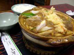 まことや東京から新幹線に乗って1時間40分ほどで名古屋に着く。この日はあいにくというか絶好というか雪が降っていた。今回紹介するまことやは名古屋の中心地からはちょっと外れた住宅地に近いエリアにある。それでも幹線道路沿いではあるのだが。地下鉄の川名駅から徒歩で13分くらいは歩いただろうか。沿道には名古屋味噌煮込みうどん界の有名店山本屋総本家も店を構えている。そのすぐ先が目指すまことやである。雪の降るような天気である。歩いて来たとはいえ体はかなり冷えている。まさに熱々の味噌煮込みうどんを体の芯から欲している状況だ。店内は気取りのない内装で落ち着いている。温かみのある照明で昔ながらのうどん屋さんという風情で迎えてくれる。一番人気の親子みそえびにご飯ここは一番人気の親子みそえび\1,103税込みを注文。親子は鶏と玉子の意味で海老天が載る。いわゆる全部乗せである。注文を厨房に通す時も全部1丁であった。味噌煮込みうどんの特徴【うどん】角度を変えて味噌煮込み用のうどんは作る時に塩を使わない。これは煮こみうどんに生麺を煮込むからである。塩は茹でる時に抜けるのでここではダシに塩辛さが出ないようにうどんに塩を使わないのだ。また加水も少な目のようである。35パーセント程度だろうか。うどんの作り方も讃岐や関東のうどんとは少し違うようで何度も折り返して層を作るような製法ではないらしい。小麦粉を練って固めたものを踏み込んで固めて熟成後団子につくる。食べたときのコシというか小麦の塊という感じはこの押し固められた麺の製法にも関係が有りそうだ。塩が入らないのでグルテンとでんぷんの競演のような滑らかさや伸びやかさは感じないうどんになる。まことやで使われる小麦粉は金トビ志賀製粉のかもめというブランドだ。蒲郡にある製粉会社で名古屋、東海地方のうどん店での使用頻度は高い。【味噌煮込みのつゆ】豆味噌は愛知県岡崎を産地とする八丁味噌が味噌煮込みうどんには欠かせない。色の黒い風味豊かな味噌である。豆味噌独特の渋みも魅力がある。名古屋のうどん店ではこの味噌のブランドやまたブレンドする味噌の配合やダシの種類でお店の特徴を出している。まことやは比較的まろやかなふっくらした味噌ダシだと思えた。節類の複雑な旨みの絡みと味噌の風味と味醂などの甘さが渾然一体となっている。色から想像する辛さはない。【食べるぞー】約10分ほど煮込まれるといううどんはぐつぐつと煮えたぎりながらテーブルに運ばれてくる。ここの味噌煮込みうどんにはふたがついてこない。小さな取り皿とレンゲがついてくるから普通に取り分けて食べる。葱の青さと白さが彩りを添えていて何となく嬉しい。海老天の大きさに思わず顔がほころぶ。この味噌煮込みにはご飯が似合う。ご飯210円を頼もう。うどんをおかずに食べるご飯はおいしい。少し行儀が悪いが汁にご飯を入れて雑炊にするのもおいしいと思われる。味の良くしみ込んだしいたけや鶏肉が美味い。玉子を崩して食べるかそっとうどんで取り囲んで黄身を固まらせて食べるかはお好み次第。店頭でご主人の山本誠さん昭和49年に開業で地元の人に愛されるお店である。店主の山本誠さんは今でも店頭で麺打ちをしている。元気なおじさんである。比較的高いといわれる名古屋の味噌煮込みうどんであるが地元御用達のこの店のメニューは納得。ベーシックな親子みそ【メニュー】親子みそえび \1,103 大盛\1,418みそえびかしわ入 \1,050 大盛\1365みそえび玉子入 \998 大盛\1313みそえび入 \945 大盛\1260親子みそ\893 大盛\1208みそかしわ入\840 大盛\1155みそ玉子入り\788 大盛\1103みそにこみ\735 大盛\1050すましにこみ(醤油味)\735 大盛\1050ご飯 (小のみ)\210ざるうどん \735 大盛\945ざる天ぷら付き\945 大盛\1155天うどん\735 大盛\893親子なんば\872 大盛\1050とりなんば\809 大盛\945天とじうどん\840 大盛\1103玉子とじ\630 大盛\893志の田うどん\630 大盛\893うどん\420 大盛\630全席禁煙【まことやDATA】愛知県名古屋市昭和区壇渓通4-14052-841-867711:00-20:30毎週金曜定休日※記事内容は執筆時点のものです。最新の内容をご確認ください。※メニューや料金などのデータは、取材時または記事公開時点での内容です。