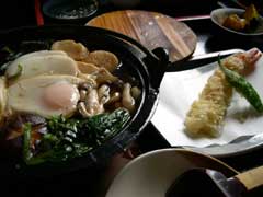 さわいち女性スタッフしかいない店内。奥の製麺室で女性がうどん団子作りにせいを出している。さわいちはさいたま市見沼区を通る第二産業道路沿いにある手打ちうどん店である。最寄り駅は東武野田線大和田駅かJR宇都宮線東大宮駅になる。JR土呂駅から歩いても同じような距離かもしれない。グリーンセンターという公園があり目を楽しませてくれる散歩コースになる。お腹を空かせて行こう。鴨南うどん小盛平日は11時から15時までしか営業しないがそのうどんは人気がある。力強くコシのあるうどんは武蔵野うどん系のがっちりしたコシ。しかし表面はあめ色のしなやかなピカピカうどんでエッジも綺麗にででいる。少し太めだがそれがまた魅力的だ。定番のもりうどん。噛み切れないほどの強さに驚く。(笑)定番のざるうどん創業は平成5年。店主の小澤さんと近所の主婦10人ほどで現在店を切盛りさせている。はじめられたきっかけは沢井さんのご主人がうどん店を始めたかったということ。そのご主人は現在もサラリーマンを続けられているという。お店がうまくいかない場合の安全策だと笑うが12年もお店を続けていればそれは冗談にしか聞えない。うどんの作り方やメニューは小澤さんやご主人やスタッフの方たちでいろいろ検討しながら作るという。またお客さんからリクエストが有って実現したメニューも多いらしい。小麦粉の選定うどんは現在日清製粉の白椿で作られる。創業当初は地粉も含めていろいろな小麦粉を集めて味比べをしたそうだ。部屋にたくさん並んだ25キロ入りの小麦粉の袋は壮観だったという。その頃試作うどんを毎日食べさせられたスタッフの家族からはしばらくはうどんを食べたくないという悲鳴も聞こえてきたとか。迫力のあわせ天盛たどり着いたのは価格も高いが味のよい白椿だった。開店当初は単一メニューのアレンジで冷たいうどんとてんぷら数種類の組み合わせだった。スタッフ全員が飲食店の経験のない素人からの出発で難しいメニュー構成にできなかったためという。今は効率よく茹でたてうどんを出してくれるのはいうまでもない。うどんの量は多いほうである。並で普通のお店の大盛程度はあろうか。参考のために食べ歩いた時に、よそのお店の盛の少なさが気になったからとか。「おいしいうどんをたくさん食べて欲しい」とのことで一人前300gの生めんをゆでる。出来上がりは500g近くになる。たっぷりと食べて欲しいというお母さんの愛情のような盛のよさである。私のような大食漢には大変嬉しい。お土産うどん(350円)も一人前は300グラム以上有る。茹でれば普通に二人分は取れる。人気メニュー海老天重のランチセット天重とうどんの組み合わせたランチセットが人気だ。天ぷらは大変軽く揚がっていてサクサク感が残る。これに自家製丼ツユをかけて天丼に仕上げる。海老天重は海老・キス・ししとうの天ぷらにざるうどんか、かけうどんが付く。これで1000円はお値打ちオススメ品。いか天重900円、野菜天重800円とリーズナブルでお腹一杯のメニューとなる。ランチセットはご飯がなくなると終了。しいたけ汁うどん単品ではしいたけ汁750円が人気。きのこ汁に冷たいうどんをつけて食べる。温かいうどんでは鴨南うどん1050円や揚げ餅を使った力うどんがよい。リクエスト不思議なことだがこの店には肉汁うどんがない。有っても不思議ではないのだが・・・たずねてみると現在企画中でまだ意見がまとまらないようだ。さいたま市内にある他店のまねになるので何となく気後れしているという。そんなことは気にせずにぜひとも肉汁うどんや肉きざみうどんをメニューに追加してもらいたい。さわいちのうどんにはきっと抜群の相性だと確信する。かわりうどんゴボウうどんゴボウうどんがオリジナル。はじめはゴボウ天うどんだと理解していたのだが話を聞いてみるとなんとゴボウを練りこんだうどんであった。ゴボウをすりおろしてうどんに打ち込んである。ゴボウが小麦のふすまのように麺線に点在している。かみ締めるとかすかにゴボウの香りがする。お客さんの反応は人によって違うらしいが、限定品のため有ったら試してみるのも一興か。ほとんどのメニューをゴボウうどんで供することができる。 【さわいちDATA】季節限定なべやきうどん1600円2008年5月18日移転オープンしました新住所埼玉県さいたま市見沼区大和田町2-1009-1048-688-3888営業時間平日11時から午後15時土曜日曜 11時から15時 定休日 毎週月曜日 祭日の場合は営業主なメニュー旧価格 (変更になっています2008/5/18 50円値上げ)●冷ものもり550円・ざる600円・しいたけ汁750円・なめこおろしざる 800円山菜おろしざる800円・きのこおろしざる800円・とろろざる800円かも汁1050円・野菜天ざる900円・いか天ざる1200円合わせ(海老といかと野菜)天ざる1400円・海老天ざる1600円●温ものかけ550円・釜揚げ650円・わかめ700円・なめこ800円・山菜800円・きのこ800円・やまかけ800円・ちから800円・かも南1050円野菜