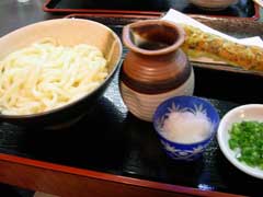 SIRAKAWAさぬき食べ歩きのひとつの極意を伝授しよう。香川県は日本で一番小さな県である。以前は大阪府だったらしいが埋め立て工事で大阪は面積が増えたらしい。いずれにせよ似たような面積なのであろうが。(調べたわけではないので信用しないように(笑))人気のたこちくぶっかけ430円各地に分散するうどん店を効率よく回っていろいろなうどんを食べたいと思うのは県外から訪れるうどんファン共通の希望だろう。いかに効率よくたくさんのうどんを味わうか・・・うどん密集地帯であるがゆえに隣近所に有名うどん店がひしめき合う。ひとつのエリアをはしごしてもせいぜい2店か3店も回れば相当おなかがいっぱいになる。そんな時はどうするか。遠くのうどん店に移動するのだ。(笑)さて2005年5月22日高松市内で3玉のうどんを食べた私が次に向かったのは・・・西讃エリアの三豊だ。高速道路を使うとほんの1時間も走らないうちに愛媛県に入りそうになる。(笑)三豊郡山本町に目指すうどん屋がある。移動時間が小1時間も有ればまたお腹に余裕ができるのである。アルファベットでSIRAKAWAと書くSIRAKAWAは店主白川さんが2004年4月開業。普通は白川と名乗ることが多いのだが先に開店した『白川』なる店がすでに存在する。そこで考えたのが讃岐では珍しいアルファベット表記のSIRAKAWAである。ちなみにSHIRAKAWAではないので注意。SIRAKAWAは一般店である。注文を聞いて出してくれるレストラン形式のうどん店である。支払いは食べ終わってから。客席はL字型のカウンターで厨房を囲うような形。うどんを作る工程はすべて見える。注文を受けてから茹ではじめるうどんと天ぷら。入り口に近いほうから天ぷらの揚場。釜、洗い場とあり、振り向けば小コンロなどの調理場という動線で出来上がればそのままカウンター越しにうどんが出せる仕組み。動きよさそうな流れが実現されている。人気メニュー人気のたこちくぶっかけ430円ぶっかけ系のメニューが人気のようだ。特に揚げたてのちくわ天を載せたちく天ぶっかけがお奨め。ちくわはエビを練りこんだえびちくわと蛸をふんだんに材料にしたたこちくわ。別皿ででる磯部揚げのちくわ天は香ばしくそのまま食べてもうどんに載せて食べても良い。ガブリと噛みつく時には火傷に注意。私はたこちくぶっかけの冷たいのを食べた。ぶっかけダシは少し甘めだがダイコンおろしと天ぷらとうどんと絡むとちょうど良い。意欲作肉汁ざるうどん490円もう一つ面白いというと失礼だが武蔵野うどんの肉汁うどんをヒントにした肉汁ざるうどん(490円)がある。肉は豚肉。何故豚肉なのかをたずねると、「豚肉のほうが美味いから」と明快な答え。牛肉文化圏でも肉汁には豚なのである。見事な見識。季節の野菜とともに熱いツユに仕上げて供せられる。冷たいうどんを肉汁につけて食べる。濃い目で甘めのつけつゆはこの西讃エリアの一般的な好みらしい。一般的に香川西部から愛媛にかけてはダシは甘くなる傾向がある。白川さんによるとこれでも「もっと甘くしてくれ」と言われることもあるそうだ。中太のプリプリもちもちした麺との相性は良い。関東育ちの私としてはやはり少し甘すぎで後味をお茶で流してちょうど良い具合だろうか。甘さというのは育った環境でかなり左右されるのでSIRAWAWAが地元に根ざした店ならこの選択は素晴らしく正しい。時々来る圏外のお客よりも毎日来るお客を大事にしたほうが良い。白川さんはなかなか面白い日記を書いているのでそちらもお奨めである。大将のキャラクターがよくでている。うどんに真剣なのは当然だが、若々しく生活を楽しむ余裕は新世代のうどん店主だ。千趣会のうどん店にも選ばれてカタログにも載る。知名度、実力ともに伸び盛りのうどん店である。【SIRAKAWA DATA】香川県三豊郡山本町大野2854-8 電話: 0875-63-4602 営業時間 11:00~15:00 売り切れ終了あり SIRAKAWAきまぐれ日記※記事内容は執筆時点のものです。最新の内容をご確認ください。※メニューや料金などのデータは、取材時または記事公開時点での内容です。