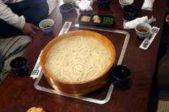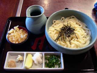 山田家 立派な長屋門讃岐を代表するうどん店といえる山田家。ネットの世界では早くから讃岐うどんの通販に力を注いだのでお取り寄せの世界では早くから有名である。なかなかエリア的に今まで訪問する機会がなく今回は私のリクエストでうどんツアーの一店に加えてもらった。今までの讃岐の旅では一般的な旅行者が行く讃岐うどんの店はあまり回っていない。どちらかといえば穴場的な面白い側面が強調されるのだが、この山田家に関して言えば真っ向勝負の正統派うどん店である。有形登録文化財のプレート造り酒屋で庄屋だったとう山田家をうどん店にしたのは現ご主人の山田潔氏である。著書『さぬきうどんに賭ける』に開業に関するエピソードやうどんに賭ける情熱が多く語られている。特に登録文化財にも指定されている江戸時代から続く建物と庭園を活かした店舗は格式と風格がある。おのずと気持ちも引き締まってうどんを味わってしまうかもしれない。しかしそこは讃岐である。とてもリーズナブルな価格でうどんが食べられる。落ち着いた庭山田家の魅力はやはり座敷で庭を眺めながらゆったりとした気分で食べるうどんだ。セルフうどんの楽しさとはまた別の落ち着いた佇まいを楽しみたい。額の書を見たり部屋の調度品にも目をやりたい。うどんが出てくるまで建物の味も楽しみたいものだ。人気メニュー人気のざるぶっかけ人気のうどんメニューは釜ぶっかけ、ざるぶっかけ。一説によるとぶっかけうどんの発祥は山田家ということになるらしい。もっとも手軽に食べられるぶっかけうどんはかけうどんに鰹節がたっぷりとかけたれたものらしい。釜ぶっかけは釜揚げの熱いうどんにてんかす、ダイコンおろし、すだちをかけてぶっかけダシで食べる。ざるぶっかけは冷たく締めたうどんで作るぶっかけ。てんかすやダイコンおろしが付くのは同じ。私は今回はざるぶっかけをいただく。喉越しの良い滑らかなうどんに上品な冷たいダシが合う。さっぱりとした食感と喉越しはいやみが無い。相当お腹が一杯なはずだがするすると入る。皆でつつけるたらいうどん同行メンバーは小分けがきく『たらいうどん』人数分を分け合えるので大勢で食べるのに向いている。私も一口味見させてもらう。温かい分うどんはよりしなやかでかすかな甘みも感じる小麦の香りの豊かさ。優しい食感だ。この温かいうどんで食べる釜ぶっかけもきっと満足するできであろう。【うどん本陣 山田家DATA】〒761-0121 香川県木田郡牟礼町牟礼3186Tel:(087)845-6522営業時間午前10時より午後8時年中無休メニューぶっかけ270円釜ぶっかけ530円ざるぶっかけ530円お土産うどん、冷凍うどん有り。また各種うどん通販に対応している。うどん本陣 山田家WEB※記事内容は執筆時点のものです。最新の内容をご確認ください。※メニューや料金などのデータは、取材時または記事公開時点での内容です。