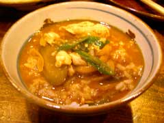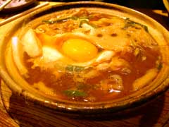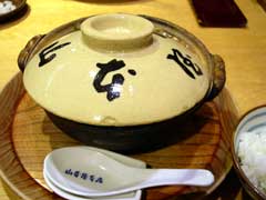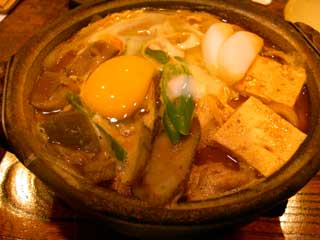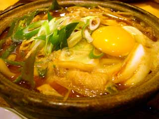 いつもにぎわう山本屋本店エスカ店ベーシックな味噌煮込うどん味噌煮込うどん界の巨星山本屋本店。もう一方の雄、山本屋総本家と名古屋で人気を二分する。隣接するこの2軒は常にライバル。ただしこの2店を同じ店だと理解してしまう人もたくさんいる。名古屋で山本屋というと20店近くがあることになるが、経営の異なる2系列である。今回紹介するのは山本屋本店。最近東京の浅草雷門に新店をオープンしたのは山本屋総本家。ちなみに山本屋総本店というお店は無いのでご注意を。とまあ紛らわしい説明はさておいて。名古屋の味私が名古屋の味で一番惹かれるのは蓬莱軒のひつまぶしだ。(笑)うどんじゃナインカイ!!と突込みが入りそうだが。熱田神宮近くの蓬莱軒で食べたひつまぶしは最高においしい鰻料理だった。その少し前まで『ひつまぶし』のことをひまつぶしと固く信じていて不思議な食べ物だなぁと思っていたことを白状しよう。知人に名古屋のひまつぶしって何?って質問して笑われた。味噌煮込うどん豆腐けんちん入り味噌煮込うどん一半話を本題に戻すと味噌煮込うどんである。初めて食べたときの印象は煮えていないうどんだった(と感じた)。どちらの山本屋のうどんかは思い出せないのだが当時名古屋在住だった弟からの進物であった。パンフレットにある作り方を忠実に作ったのだが・・・なんとも奇妙なうどんでいくら煮ても生煮えのような固さが残るのである。一度茹でてから作った記憶もある。煮ても固いうどんだと知ったのはだいぶ後になってからだった。東京で味噌煮込うどんが食べられることになったのはでら打ちがオープンしてからだ。日に10食弱の限定品。店主によると開店当初は煮えていないというクレームが多かったらしい。それ以来説明しながら名古屋味噌煮込うどんをアピールする日々だったらしい。ということで名古屋味噌煮込うどんのイメージができあがったと思う。固い麺・豆味噌(通称八丁味噌)を使ったつゆ・たまごを落とす・土鍋のふたで食べる・ごはんがつきもの。これが現在私の味噌煮込のイメージだ。山本屋本店黒豚入り味噌煮込うどん栄白川店と名古屋駅太閤口の地下商店街エスカ店が行動エリア的に近く良くお世話になる。山本屋本店は名古屋を中心に11店舗を展開する。味噌煮込うどん専門店である。「当店ではお食事以外でのご来店はお断りしいたしております。お酒・お口とりのみのご注文は受けかねますのでよろしくお願い致します。」の張り紙が入り口にある。何たる毅然・自信か。一度松坂屋の上の蓬莱軒でひつまぶしを食べた後同行した友人がもう食べられないとのことでウーロン茶を所望したときには「次回はよろしくお願いします」と言われたことを思い出す。まあ普通は連食しないから食べられないのが普通なのだが・・・。山本屋本店味噌煮込うどんの特徴季節限定地鶏茸味噌煮込うどん愛知県名産の3年熟成赤味噌(豆味噌)と白味噌のブレンドのあじ味噌を節系の出汁で割って作る味噌煮込の汁。この汁に生のうどんを入れて煮込む。うどん打ちに塩は使わない。茹でずに煮込むうどんは塩を使うと塩が汁に溶け出す。汁の味が塩辛くなってしまう。また独特のうどんの食感を出すために味噌煮込うどん用のうどんは塩を使わない。よって弾力やもちもち感が無い小麦粉そのものに近い、粉を感じさせるうどんになる。食べ慣れるとこれが癖になる。また多くの名古屋人にはこれこそが味噌煮込うどんということになる。私が毎週池袋で食べる名古屋うどんの味噌煮込うどんは名古屋では味噌鍋焼きうどんにジャンル分けされると思われる。ちなみに山本屋本店ではやわらかいうどんも用意されているらしい。私は食べたことが無い。味噌煮込うどんの食べ方味噌煮込うどんのお出まし基本メニューは味噌煮込うどん 1260円税込 名古屋コーチン入り味噌煮込うどん ご飯付2310円税込など。特選具材入り基本メニューはご飯付で2310円が多い。季節により地鶏茸入り味噌煮込うどんや松茸入り味噌煮込うどんなどが登場する。ご飯は単品で300円お替り自由。自家製お漬物(白菜・キュウリ・セロリ等)もお替り自由で供される。お酒も頼んで一品気の利いたつまみをつけると4000円程度の食事代になる。なかなか贅沢な食事となる。複雑な風味を感じさせる味噌味と素材。独特のうどんの味わい、漬物のおいしさ、ご飯のおいしさ、接客の良さなど飲食店としてのグレードは大変高いと思う。●ふた付で運ばれて来る味噌煮込うどん。生卵を固めたい人は上にうどんを載せておく。土鍋のふたが皿代わり●ふたを皿にして小分けして食べる。うどんの汁が飛ばないように静かに盛る。飛んでも大丈夫のようにエプロンも用意されている。●熱いのでゆっくりと口に運ぶ。私の場合はご飯茶碗の上に一度載せて白飯に味噌の味を移す。●うどんを完食したらご飯をお替りして鍋の中に投入。しっかりと汁に絡ませて雑炊にする。おだしと共に全部食べつ