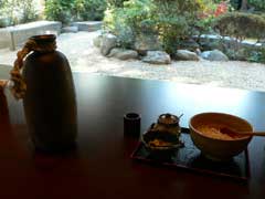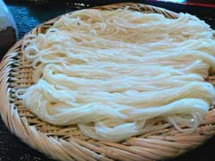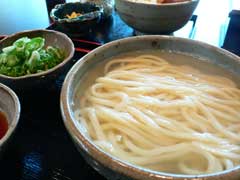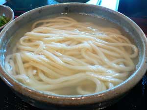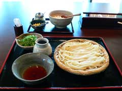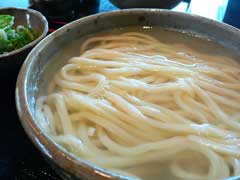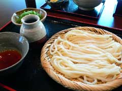 明治時代の蔵を店舗にする釜竹根津 釜竹 石蔵店の入り口へのアプローチ釜竹はかまちくと読む。大阪府羽曳野(はびきの)市に1985年創業という本店があるが私はまだたずねたことがない。釜揚げうどんとざるうどんだけで勝負するのは根津の新店舗も同じ。2005年10月東京進出根津の景観に融ける見事な店舗が完成した。東京メトロ千代田線根津駅から徒歩5分ほどだろうか高級老人ホームウイーザス根津の一角、明治43年に建てられたという石蔵とガラスを利用したモダンな建物が根津 釜竹 石蔵だ。谷根千と呼ばれる(谷中・根津・千駄木)この界隈は明治の文人墨客が愛した土地柄で近くには森鴎外や夏目漱石、樋口一葉などの居住跡など縁の建物や博物館がたくさんある。腹ごしらえして散策するのも楽しい。開放的なガラスの向こうに庭が見える。庭を見ながらのうどんはしばし東京にいる事を忘れさせる。不忍通りと言問通りにはさまれた一角だが本当に静かで時間の流れが止まっているようにも感じられる。大テーブルで庭を眺められる席に案内される。後ろは蔵への入り口。こちらは座敷に仕上げられているようだ。太い梁が何本も見える。頑丈そうな石造りの蔵である。次回はこちらで食べてみたい。釜揚げうどん専門店自慢の釜揚げうどんうどん店のメニューとしては私の知る限り最小のメニュー数かと思う。基本的に3種。釜揚げうどん850円、釜揚げうどん大盛り950円ざるうどん 900円、ざるうどん大盛り1,000円(太打ちと細打ちが選べる)ねぎの追加 100円他にうどんのお品書きは無い。麺前酒として日本酒の選りすぐり季節の肴としていろいろ用意はあるがうどんにかける意気込みが凄い。細打ちのざるうどん絶品の手打ち細打ち麺まずはざるうどんを細打ちのうどんで注文。待つ間庭を眺めている。12月都内も紅葉する。静かだ・・・隣接する建物は木の質感を活かした根津らしい建物。老人ホームらしいがこの釜竹の建物と一体化していてこの庭を共有している。店の奥からはトントントンとうどんを切る包丁の音。切りたてを茹でるようだ。先客の女性二人の注文の品が運ばれてきた。大きなざるに極細のうどんが整然と並んでいる。大盛りのざるのようである。この量と姿を見るとこれから出てくるうどんは期待できる。小さな声の会話が聞こえてくる。「この大盛りのうどん量がちょうど良いのよ・・・」あとは聞き取れなかったが若い女性の会話としては大変頼もしいものを感じる。さすがにこのあとの食べ方までは注視しなかったが上品に召し上がられていた。庭を眺めて一味アップさて私のざるもできあがってくる。一回り小ぶりのざるだが普通の大きさだ。6ブロック程に盛り付けられた細打ちうどんはツヤツヤピカピカ。稲庭うどんを思わせるような仕上がりである。一筋何もつけずに口に運ぶ。チュルリと音を立てたようにも思えるがしなやかに口の中で生きているように暴れる。ああこの食感は半生の稲庭うどんに良く似ている。見事な細さからは想像できないコシと喉越しであるやや淡色のつゆにうどんをつける。薬味は無し。鰹節の複雑に絡み合った深く香る美味いつゆだ。うどんとつゆでより麺の旨みが強調される。少しまとめて口の中に入れ数回かむようにして喉に流し込む。もちろん考えながらしているわけではない。口に入れば反応する。スズッと手繰って飲み込む。他人が見れば噛んで無いと見えるかもしれない。一口ごとに薬味の九条ねぎを足したり、生姜を加えたりとして一枚をあっという間に食べ終わる。釜揚げうどん釜揚げの汁徳利看板メニューである。こちらもトントンとうどんを切る音が聞こえてきてからうどんが出てきた。注文ごとに製麺しているようだ。テーブルに大徳利が運ばれてくる。大きく重そうで注ぎ口近くに紐が巻かれている。さすがに香川県のうどん店のように電気配線用のケーブルが巻かれていることは無い。電線は電線で実用的で悪くないと思うが・・・このお店だと雰囲気はそぐわない。ちゃんと計算された演出だ。ちなみにこの徳利は大阪本店も同じもののようだ。そんなことを考えて待っていると程なくうどんが出てくる。小麦粉と水と塩が作った極楽比較的大きな丼にたっぷりとうどん入っている。うどんは太打ち。常識的な太さでうどんのスタンダードの太さだと思う。少しにごった茹で湯に浮いて出てきたから本格的な釜揚げである。まずは一本取り上げてそのまま口に運ぶ。本当にかすかな有るか無いかの塩味。煮詰まった茹で湯ではない。もちっとしたうどんは淡白だが小麦の滋味を口の中に感じさせる。国産小麦のような香りの強さは感じないが粉の旨みの甘さは感じるので丁寧に作られたうどんであることがよくわかる。熱いつゆにつけ一口、ねぎを入れて一口、生姜を入れて一口。ズルズルとすすりこむ。たくさん付いてくる九条ネギは軽くさらされているようで食感が良い。強い香りや辛味は一歩引いてうどんの香りを邪魔しない