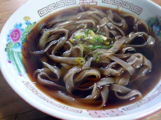 歴史を感じさせる信濃屋 信濃屋は以前から行ってみたかったうどん屋である。行けない理由はあった。日曜・月曜・火曜と店が休みだからだ。水曜・木曜・金曜・土曜の4日間に行くことが必要である。営業時間も11時から15時頃の売り切れるまで。もっと早く売り切れ閉店もある。そんなわけで何かのついでに立ち寄るという旅ではなかなか訪問が実現しなかった。やっと念願かなって行くことができた。 あいにくの雨だったがしっとりとした静かでこれはこれで風情があってよい。建物は歴史と年季を感じさせるが麺類と書かれた暖簾が比較的新しそうで颯爽としていた。店内は昭和の香りというか昔の食べ物屋さんという感じでテーブル席が1つ。こあがりにちゃぶ台が2つ。座敷があってその奥にも座敷があるようだ。雨の日の午後1時半過ぎなのに先客は何人も居た。 ころうどんは香る露 人気のころかけに歴史の重みがある 名古屋うどん文化圏でよく目にするうどんの品書きにころがある。ひやかけの一種でたまり醤油をベースにした冷たいダシがかけられている。このころという名称の発祥がこの信濃屋だ。正確に言えば先代の主人が修業した名古屋に有った信濃屋の看板商品であった。 ころとは香る露(つゆ)と書く。たまり醤油・鰹だしの一体化したうどんのつゆの香(かぐわ)しさをあらわした言葉だ。現在では東海エリアでは広く使われるメニュー名である。 基本はうどんに冷たいつゆをかけて薬味のネギとおろしショウガとゴマ。うどんの味そのものを味わう。その意味ではうどんの味に自信が無ければ到底出せるものではない。うどん喰いであれば具はいらないという思想だ。面白いのは信濃屋では40年前まではいわゆる一般的なうどんのお品書きも有った。今の店の表にはその当時の品書きも残っているのだがころかけと支那そばの注文が圧倒的に多く種物の注文が無くなっていった。それはうどんを味わうために具は不要だというお客からの要望であったようだ。 メニューは3種類 壁にかかるお品書き うどん600円 (温かいうどん) ころかけ600円 (冷たいうどんに冷たいだしのぶっかけ) 支那そば800円 (平打ちの腰の強い麺。) 小 半分 半額 (注釈 筆者) うどんは大変特徴のあるもので太くて滑らかな食感を持つ。口に含むとふわっと表面が溶ける様なそんな感触か広がる。溶けるわけではないのだが口の中に心地良い柔らかさが広がっていく。そのまますすり込めば喉にするりと落ちていく。噛めばモチモチとしながらも歯と歯茎に快感を与えるようにすっと切れる。一気にすするのがもったいないようなそんな気持ちになりながらも箸を動かし続けてしまう。色の濃いたまり醤油に鰹節のダシで、見ると味の濃さを感じて一種恐れも感じるつゆであるがまさしく香露で一種フルーティーな香りさえその奥には感じることができる。 支那そばもマニア御用達 ラーメンマニアも絶賛の支那そば 支那そばも手打ちでつくられる。平打ちで幅7ミリから8ミリ程度が厚さは1ミリ有るかないか。半透明で強い腰がある。スープはうどんのつゆの濃さを調整して自家製ラードを加えた特製。自家製ラードは良質の背脂のみつかってつくられるという。市販のラードではいろいろな部位の脂が混じるので風味に雑味が入るという。この支那そばもラーメン系のマニアには絶賛されている。連食向けにうどんも支那そばも二杯目は小を頼むことができる。 うどんの仕込み 午後4時過ぎには店は閉まって翌日のうどんの仕込が始まる。 小麦粉と塩水で練るのは普通のうどんと同じ。もっとも小麦粉も塩水も主人によれば普通のうどん屋が使うものということだが何か秘密はあるかもしれない。一つ違うことは水回し(塩あわせ)と捏ね(練り)で2時間半かかるということ。それも足踏みは使わないで手でこねること。 水回しに1時間30分。捏ねで1時間とのこと。じっくりと粉に塩水をまわして丁寧に攪拌するのであろう。粉の一粒にしっかりと水を含ませるのだろう。 小さな粒がだんだんとまとまってひらひらとした繊維状にまとまっていくのが目に見えるようである。生地の状態を目で見ていると明日来るお客さんに少しでも良いものを食べさせたいという気持ちになるという主人。そんなことを考えているうちにだんだんと練り上げている時間も長くなってきて今の時間2時間30分におちついてきている。手だけで2時間30分練るとどんな生地になるだろう。 1時間ゆでる この生地を一晩寝かせて翌日うどんにする。かなり太目のうどんだが茹で時間を聞いて驚いた。1時間だ。しっかりと茹で上げるという。もう少し長く茹でるともっと面白いという常連さんとご主人、もう少し早めにあげたのが好きという常連さんも当然いるとか。好みは常連さんでも多様なのかも知れない。 うどんが途切れた時に訪問したら1時間待ちになるのだろうか。基本的にはお客さんの流れを見ながら茹でて置いて途切れないようにしている。心配なら訪問1時間前に電話